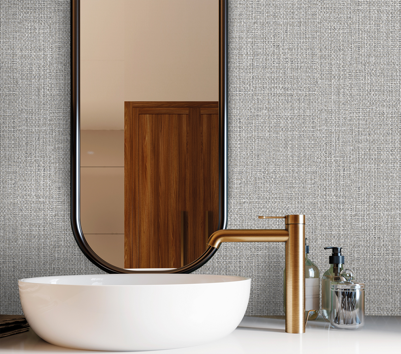 PAPEL PINTADO VINÍLICO TEXTURIZADO RAFFIA GRUESA. CESTERIA GRIS, PLATA