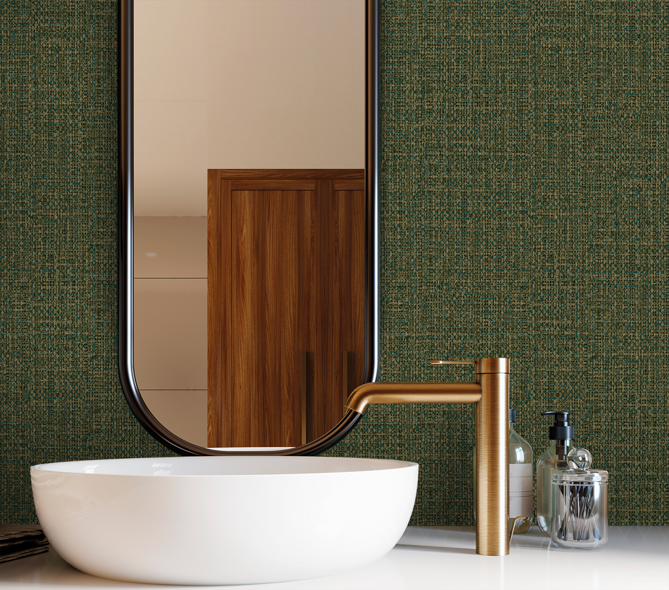 PAPEL PINTADO VINÍLICO TEXTURIZADO RAFFIA GRUESA. CESTERIA VERDE OSCURO
