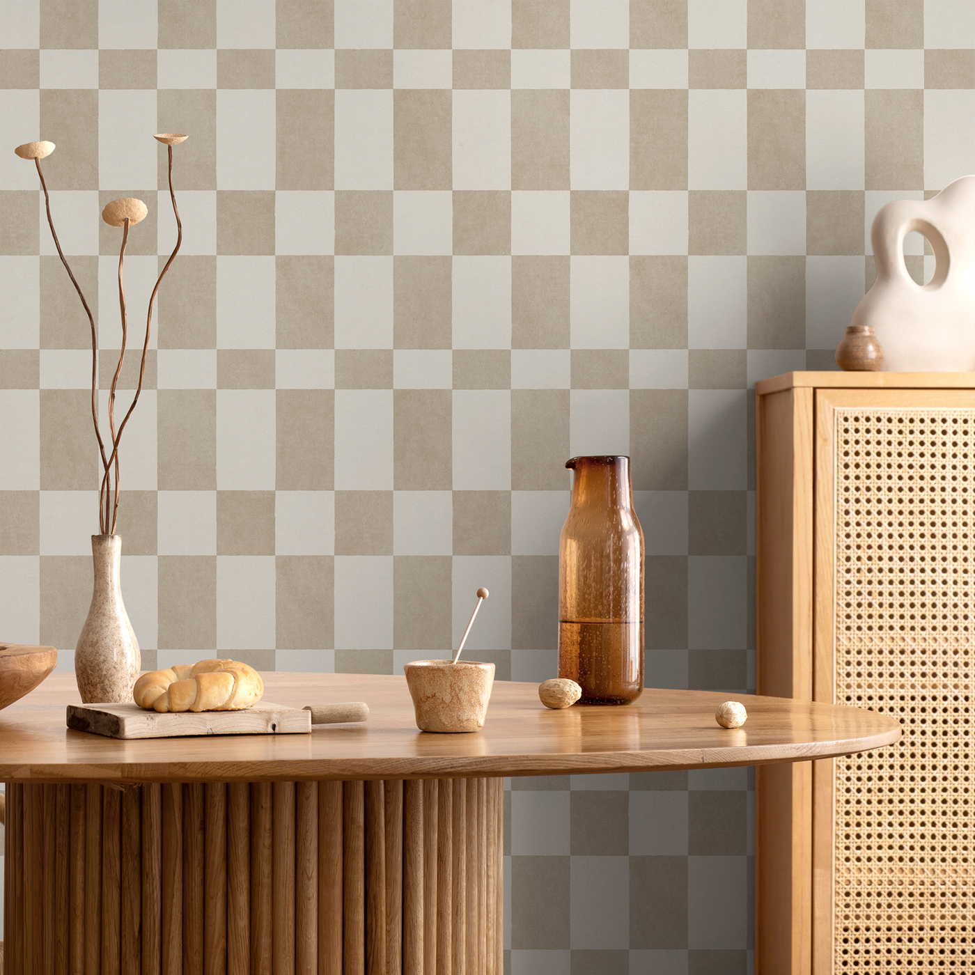 RETRO BEIGE. GEOMÉTRICO AJEDREZADO DE INSPIRACIÓN RETRO