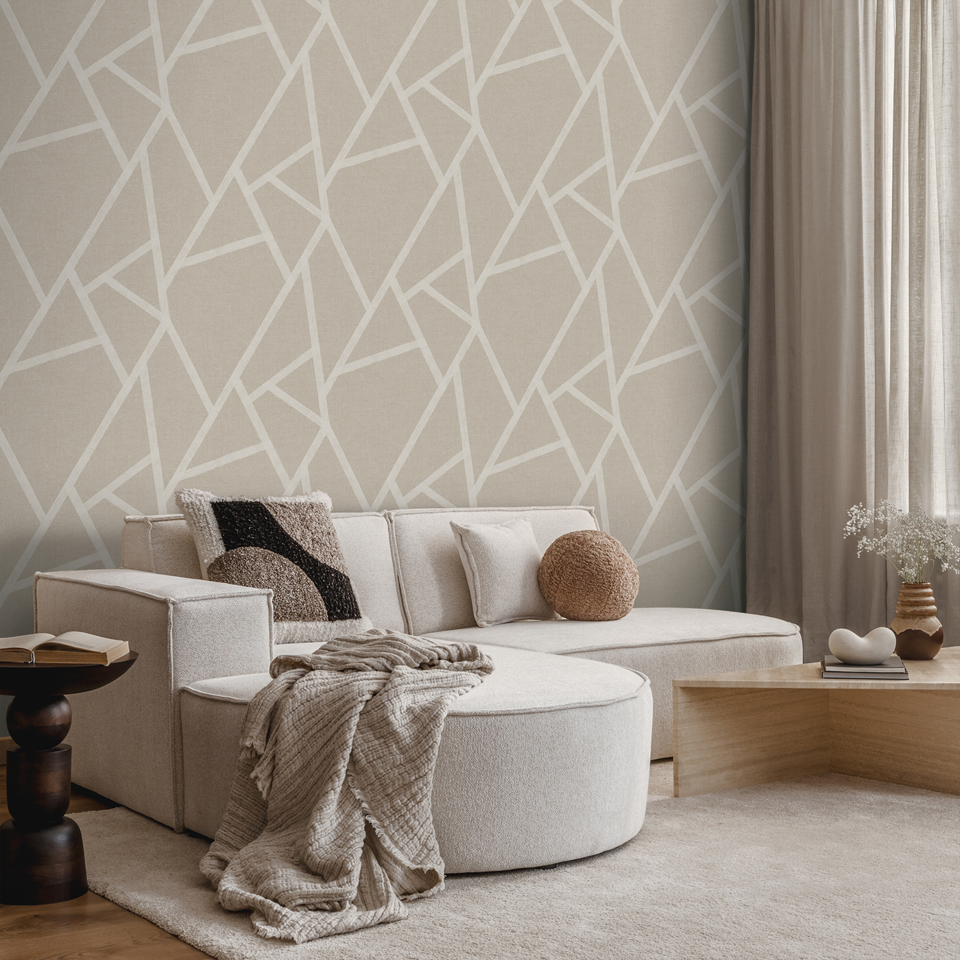 STUDIO BEIGE. GEOMÉTRICO DE LINEAS Y FONDO CON DIBUJO DE IMITACIÓN TEXTIL