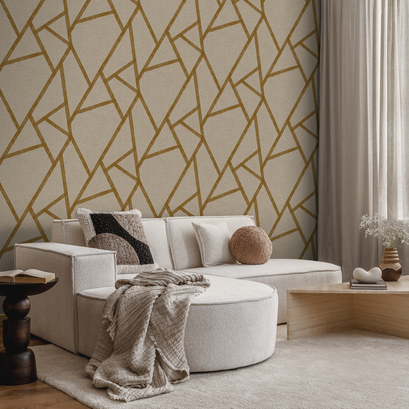 STUDIO OCRE. GEOMÉTRICO DE LINEAS Y FONDO CON DIBUJO DE IMITACIÓN TEXTIL