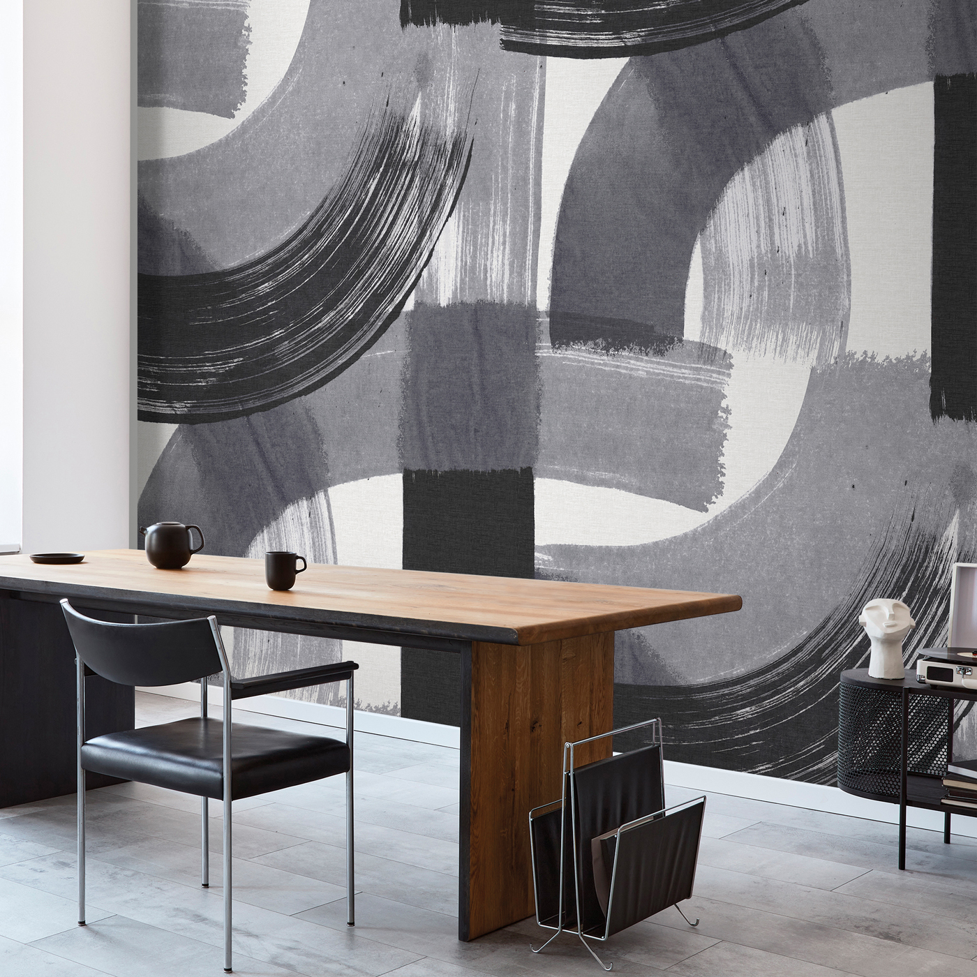 MOVE NEGRO. PAPEL PINTADO MURAL QUE SIMULA UNAS PINCELADAS