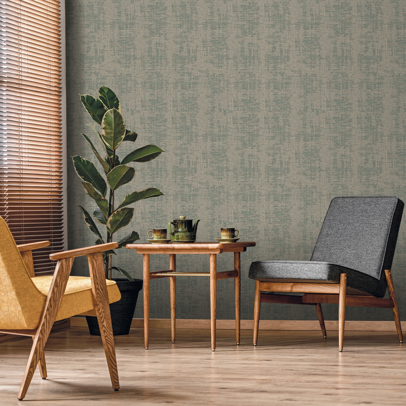 PAPEL PINTADO VINÍLICO TEXTURIZADO DESGASTADO. PAPIRO AZUL VERDOSO