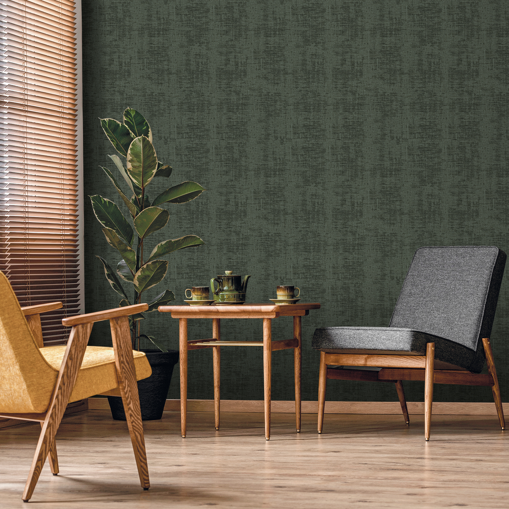 PAPEL PINTADO VINÍLICO TEXTURIZADO DESGASTADO. PAPIRO TURQUESA OSCURO