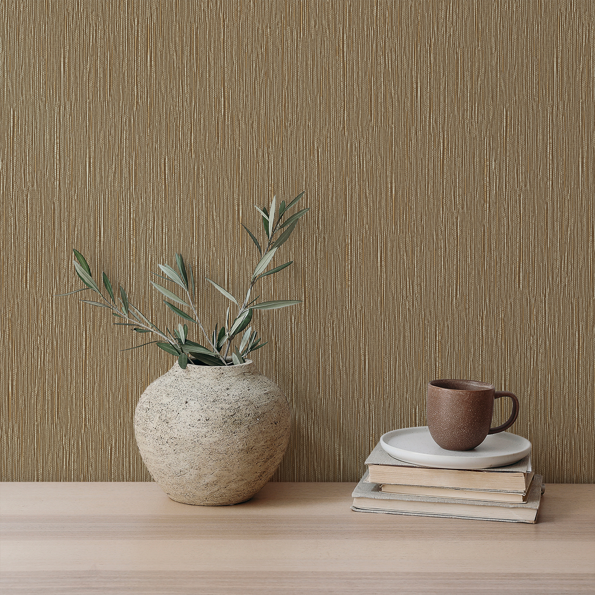 PAPEL PINTADO VINÍLICO TEXTURIZADO RAFFIA FINA. RAFFIA MARRÓN MEDIO/ORO SUAVE